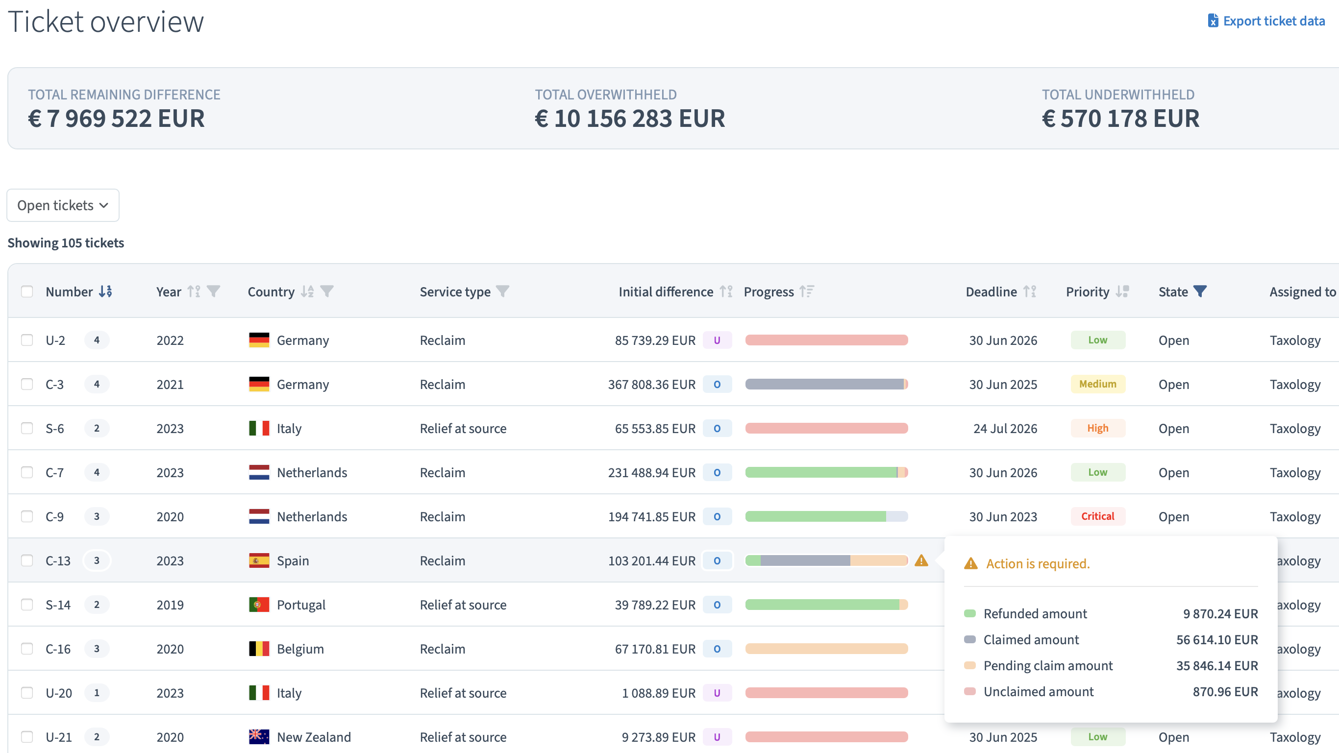 Maintain full oversight over your custodian’s recovery service and your non-custody withholding tax reclaims in an intuitive dashboard that organizes and tracks all required actions.